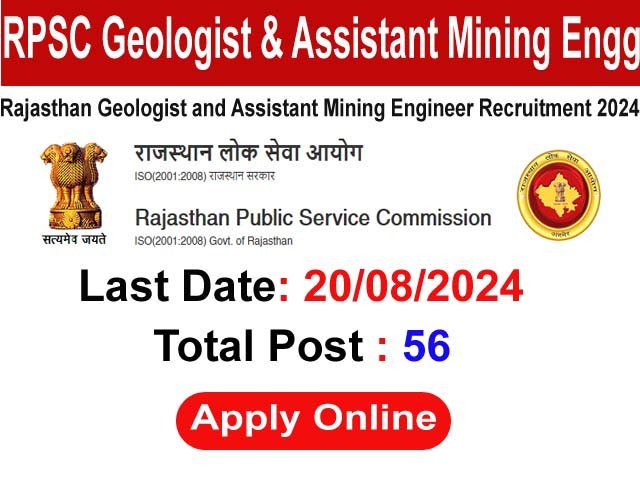 The Rajasthan Public Service Commission (RPSC) has announced an exciting opportunity for recruitment to the positions of Geologist and Assistant Mining Engineer within the Department of Mines and Geology. This recruitment drive aims to fill 56 vacancies, welcoming applications from eligible male and female candidates.